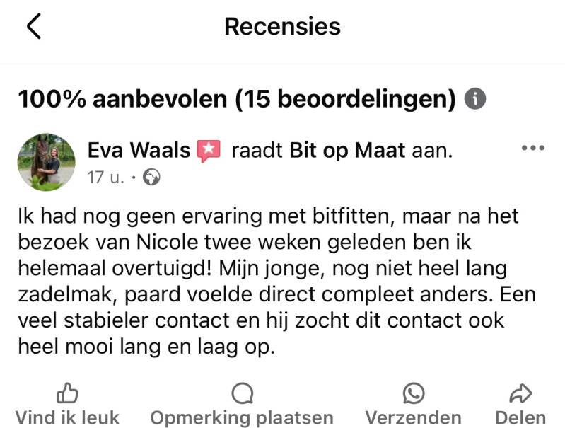 Ondanks dat Eva niet had gedacht dat je bij een paard wat nog niet zo lang onder het zadel is een Bitfit Consult kunt laten doen was ze positief verrast!
