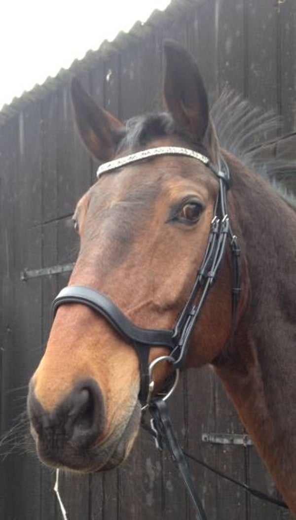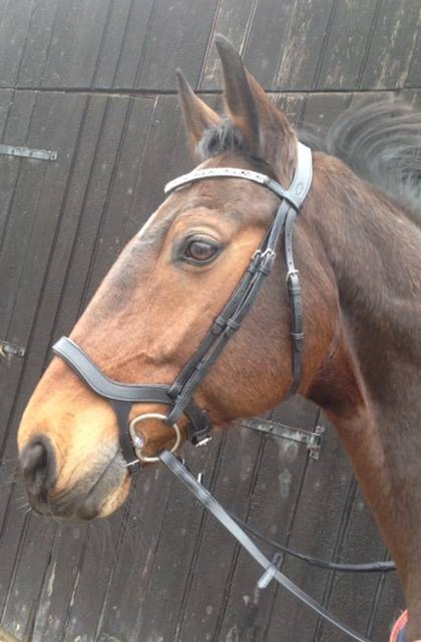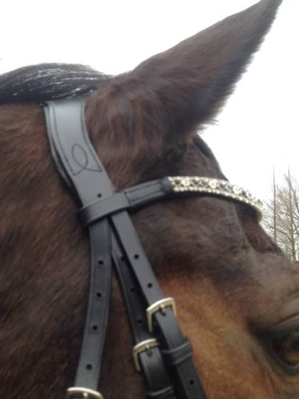 Heeft mooie steentjes op de frontriem, inclusief teugels.