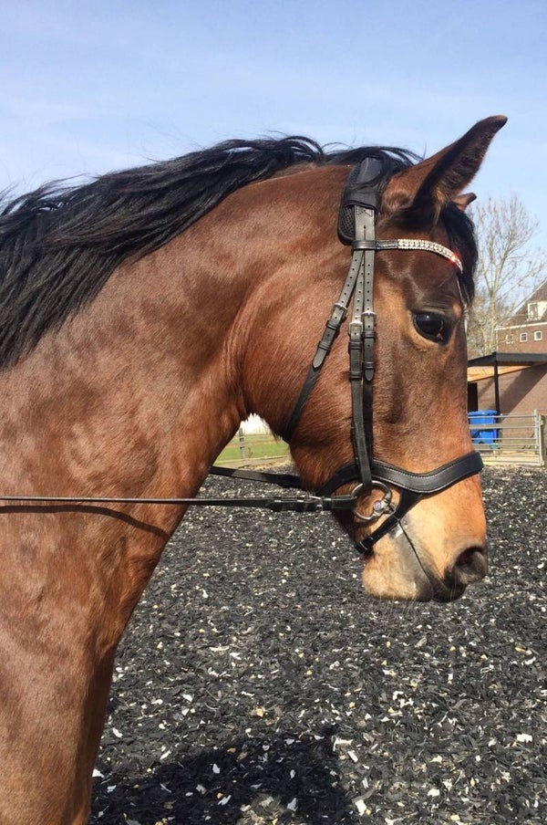 (De 15% korting bij aankoop tijdens een bitfit consult geldt voor de LJ Leather hoofdstellen, dit hoofdstel met dropnoseband heeft de actie prijs van €115 euro óók tijdens aankoop via de webshop)